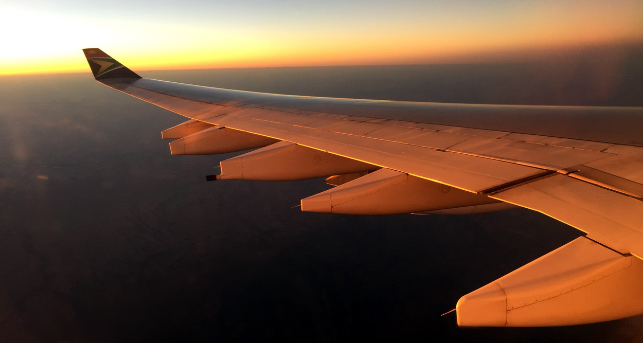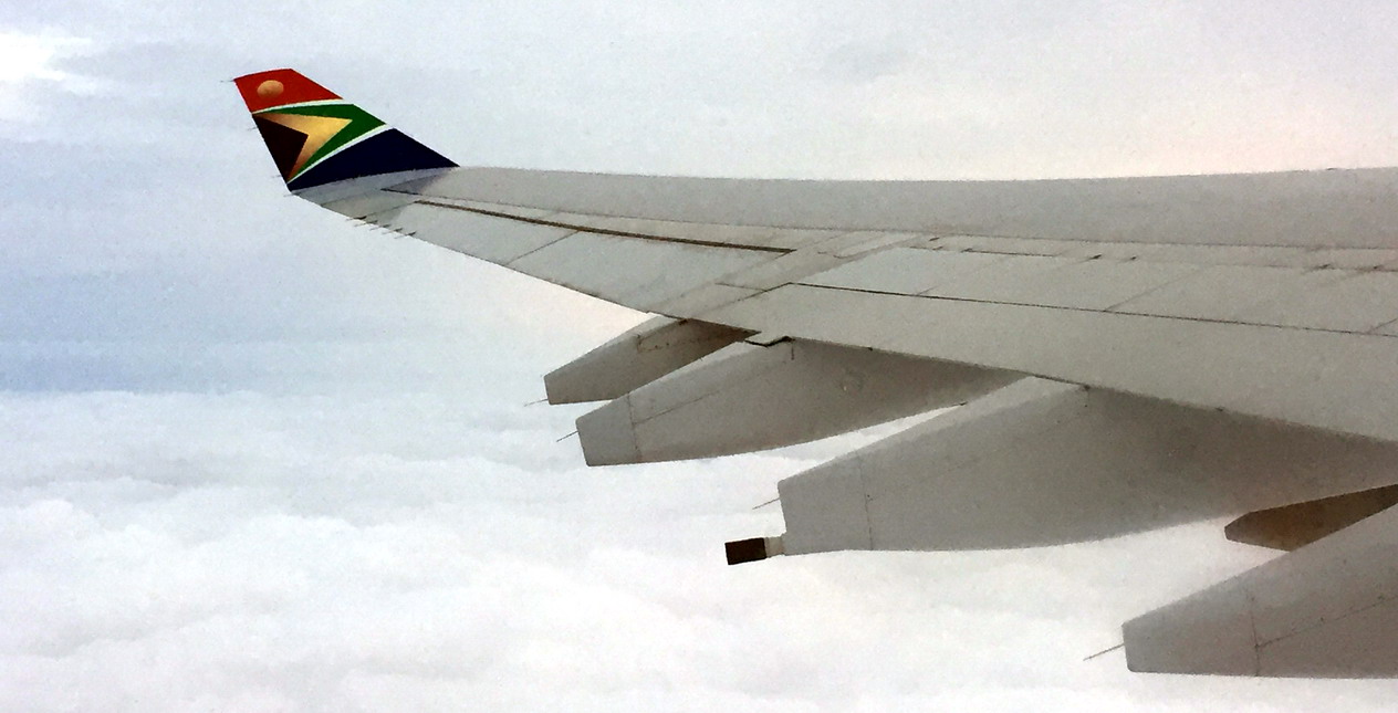 Depois de viajar em várias companhias aéreas em vários países, será nossa primeira viagem até a África e achamos uma passagem muito boa pela SAA; esta é uma das companhias que fazem voos diretos do Brasil para a África do Sul com 10 voos semanais entre o Aeroporto Internacional de Guarulhos, em São Paulo, e o Aeroporto Internacional O.R. Tambo, em Johanesburgo. A outra companhia que faz o trajeto é a LATAM. Infelizmente o voo não pára na Cidade do Cabo, portanto será preciso comprar um voo entre Joburg e Cape Town.