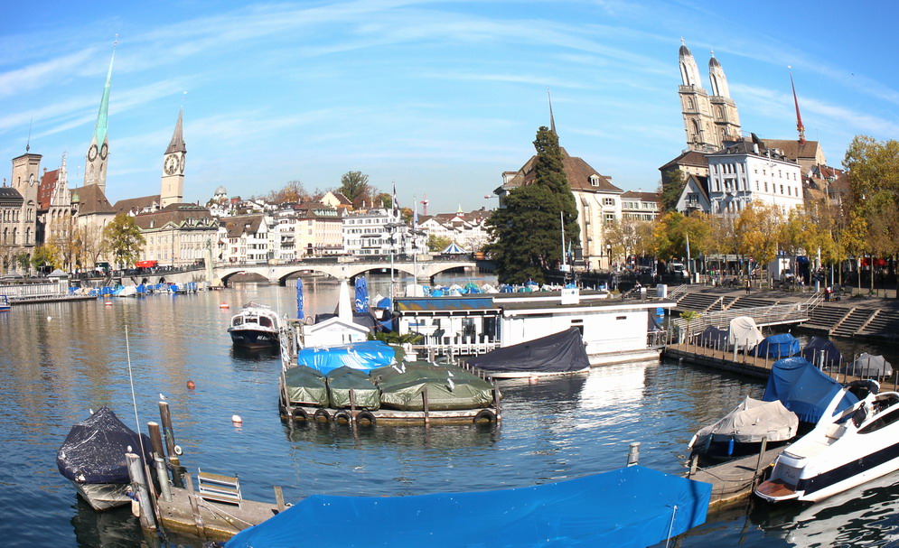 Bürkliplatz – Um dos lugares mais legais de Zurique, pois do píer saem tours de barco pelo Lago Zurique, além disso, a área oferece uma bela vista dos Alpes Suíços em dias claros.