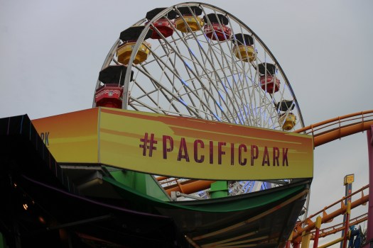 Gostei bastante do ambiente do Pacific Park à noite, em janeiro faz muito frio, então aproveitamos e paramos em um café, a minha amiga nos levou até lá e o percurso demorou umas 2 horas ou mais, ela mora perto de Long Beach, em Lynwood, as distâncias são relativamente grandes em Los Angeles, um carro, sem dúvida, é essencial. Mas também usamos bastante o metrô, que foi no mínimo interessante.