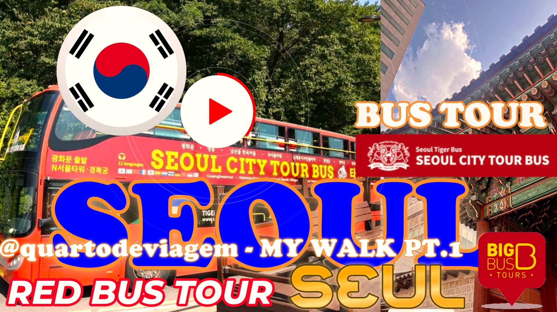 🇧🇷 (PT-BR) TOUR DO ÔNIBUS TURÍSTICO DE SEUL, CAPITAL DA COREIA DO SUL, RED SEOUL CITY TOUR BUS (SEOUL TIGER BUS). PREÇO DO TICKET PARA UM DIA DE TOUR 22.000WON ₩.